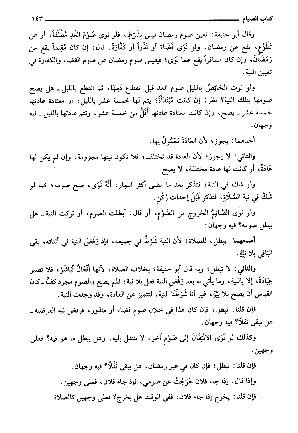 وقال أبو حنيفة: تعين صوم رمضان ليس بشرط، فلو نوى صوم الغد مطلقاً، أو عن تطوع، يقع عن رمضان. ولو نوى قضاء أو نذراً أو كفارة. قال: إن كان مقيماً يقع عن رمضان، وإن كان مسافراً يقع عما نوى؛ فيقيس صوم رمضان عن صوم القضاء والكفارة في تعيين النية.