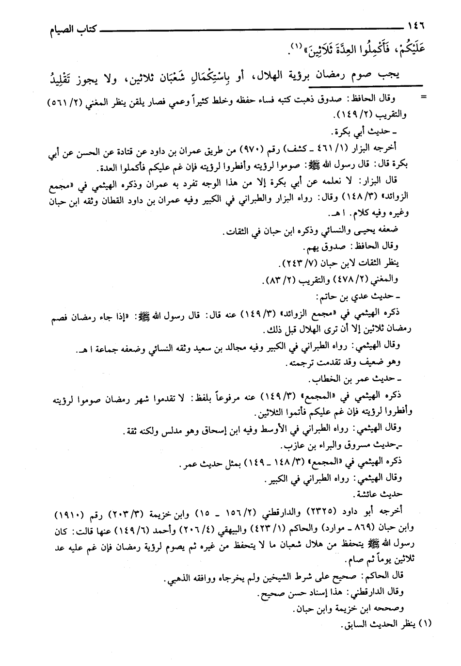 يجب صوم رمضان برؤية الهلال، أو باستكمال شعبان ثلاثين، ولا يجوز تقليد