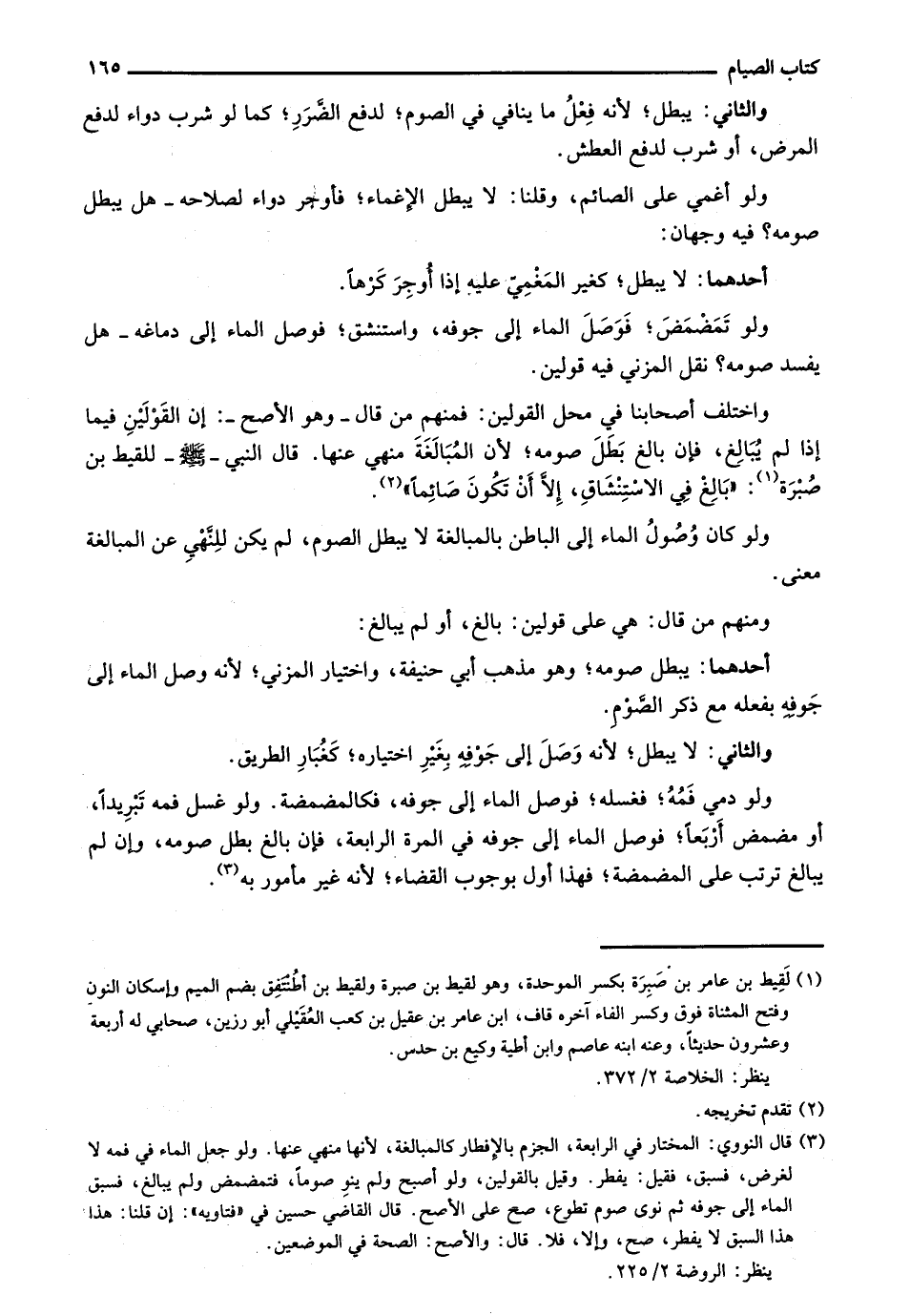 واختلف أصحابنا في محل القولين: فمنهم من قال- وهو الأصح -: إن القولين فيما إذا لم يبالغ، فإن بالغ بطل صومه؛ لأن المبالغة منهي عنها. قال النبي - صلى الله عليه وسلم- للقيط بن صُبرة: "بالغ في الاستنشاق، إلا أن تكون صائماً".