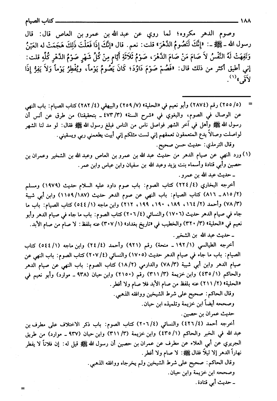 وصوم الدهر مكروه؛ لما روي عن عبد الله بن عمرو بن العاص قال: قال رسول الله - صلى الله عليه وسلم -: "إنك لتصوم الدهر" قلت: نعم. قال "إنك إذا فعلت ذلك هجمت له العين وتفهت له النفس لا صام من صام الدهر، صوم ثلاثة أيام من كل شهر صوم الدهر له قلت: إني أطيق أكثر من ذلك قال: "فصم صوم داود؛ كان يصوم يوماً، ويفطر يوماً ولا يفر إذا لاقى".