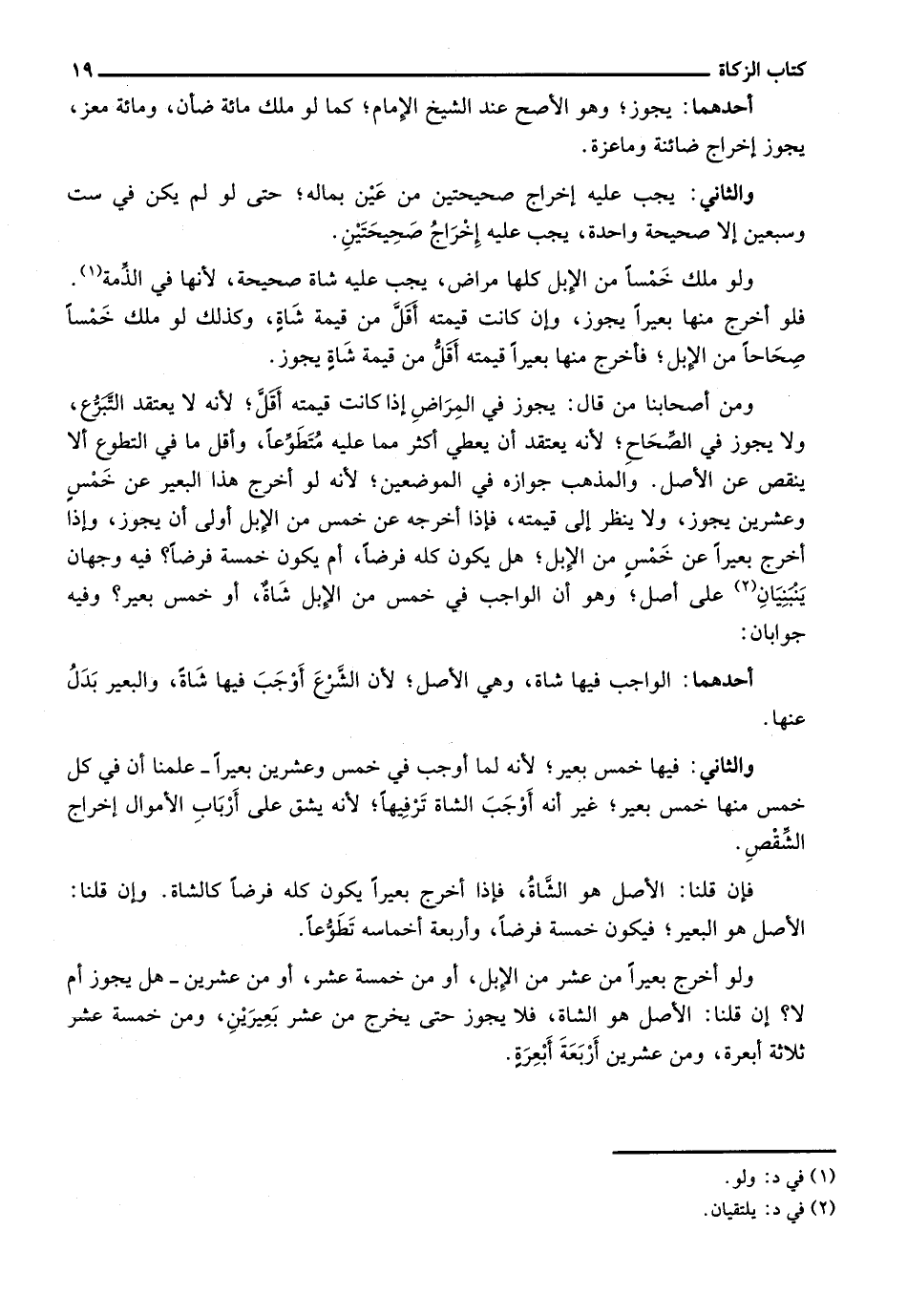 ولو أخرج بعيراً من عشر من الإبل، أو من خمسة عشر، أو من عشرين - هل يجوز أم لا؟ إن قلنا: الأصل هو الشاة، فلا يجوز حتى يخرج من عشر بعيرين، ومن خمسة عشر ثلاثة أبعرة، ومن عشرين أربعة أبعرة.