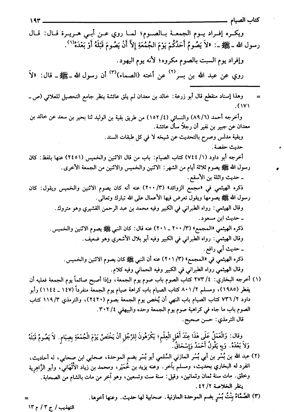 ويكره إفراد يوم الجمعة بالصوم؛ لما روي عن أبي هريرة قال: قال رسول الله - صلى الله عليه وسلم -: "لا يصوم أحدكم يوم الجمعة إلا أن يصوم قبله أو بعده".