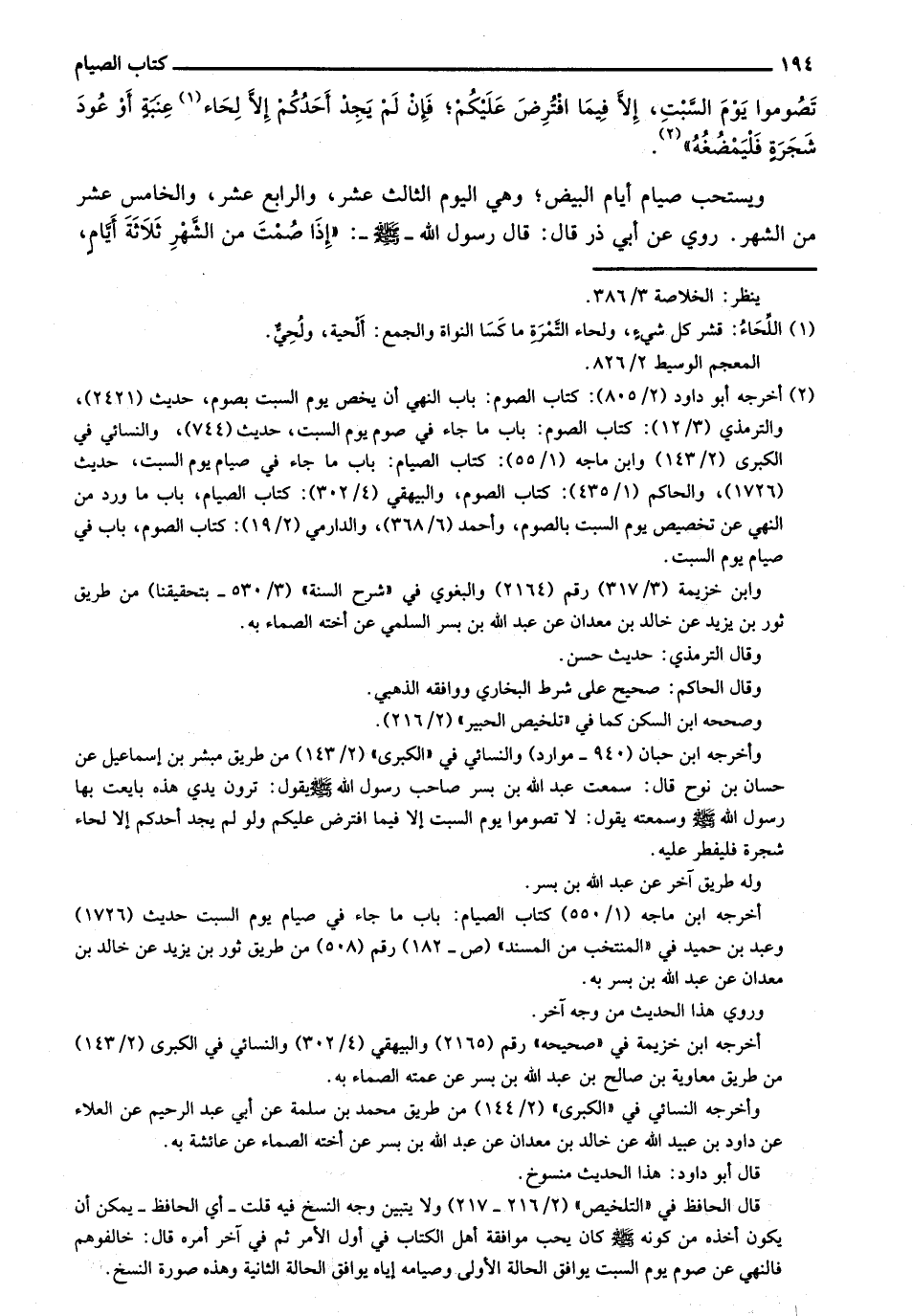تصوموا يوم السبت، إلا فيما افترض عليكم؛ فإن لم يجد أحدكم إلا لحاء عنبة أو عود شجرة فليمضغه".
