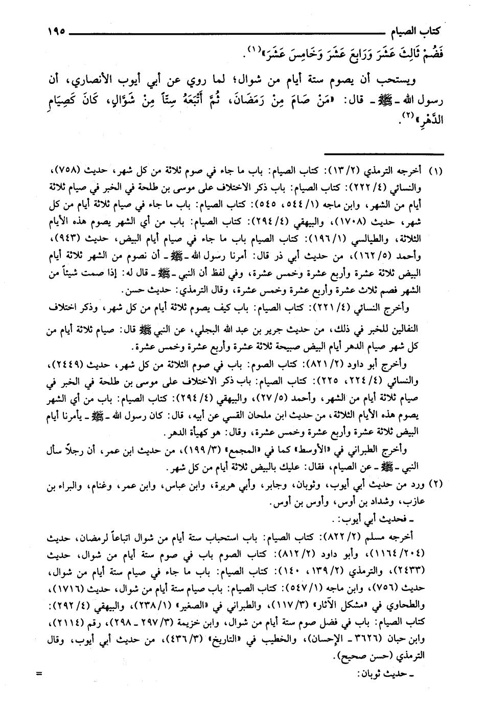 ويستحب أن يصوم ستة أيام من شوال؛ لما روي عن أبي أيوب الأنصاري، أن رسول الله - صلى الله عليه وسلم - قال: "من صام من رمضان، ثم أتبعه ستاً من شوال، ان كصيام الدهر".