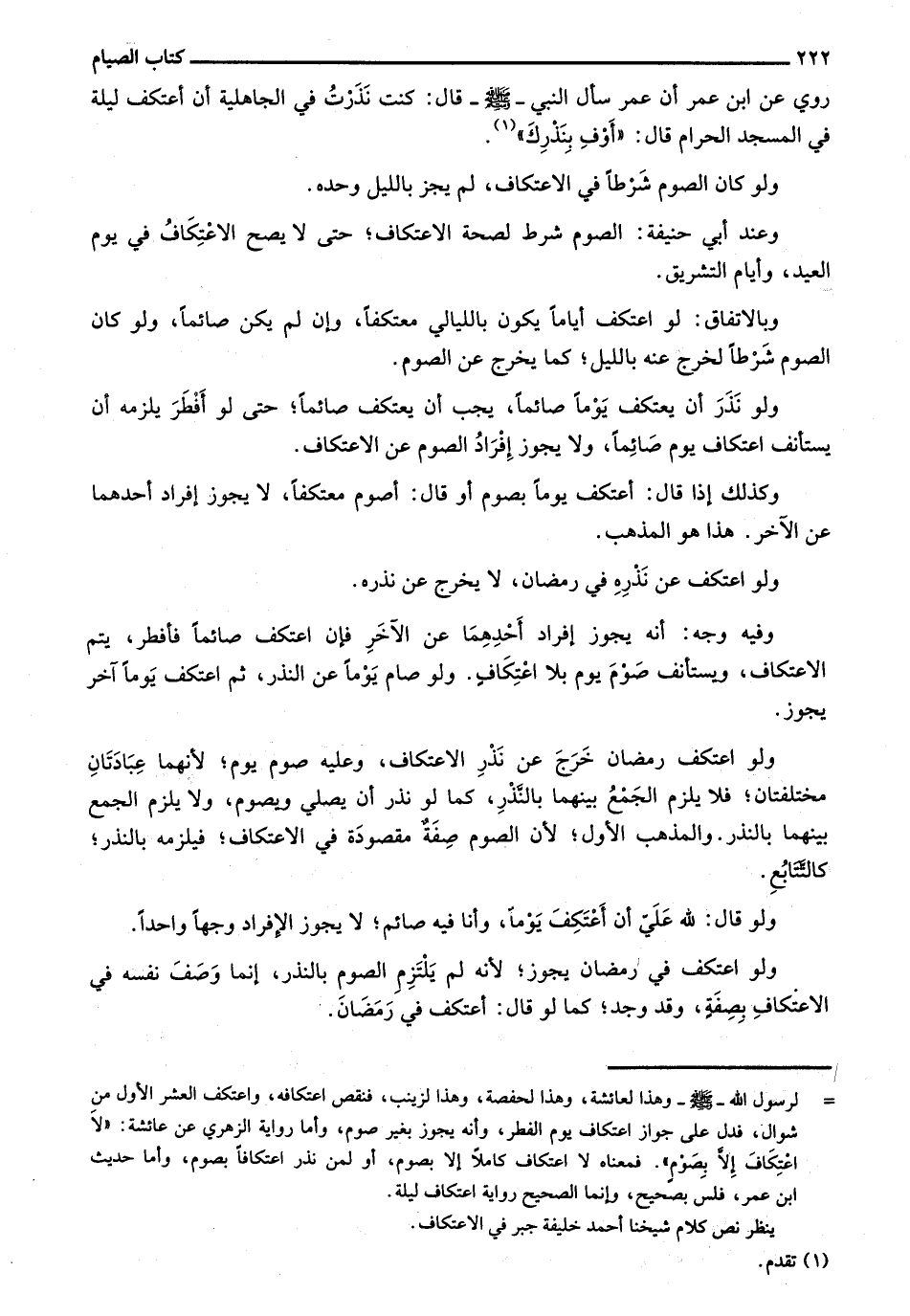 روي عن ابن عمر أن عمر سأل النبي - صلى الله عليه وسلم - قال: كنت نذرت في الجاهلية أن اعتكف ليلة في المسجد الحرام قال "أوف بنذرك".