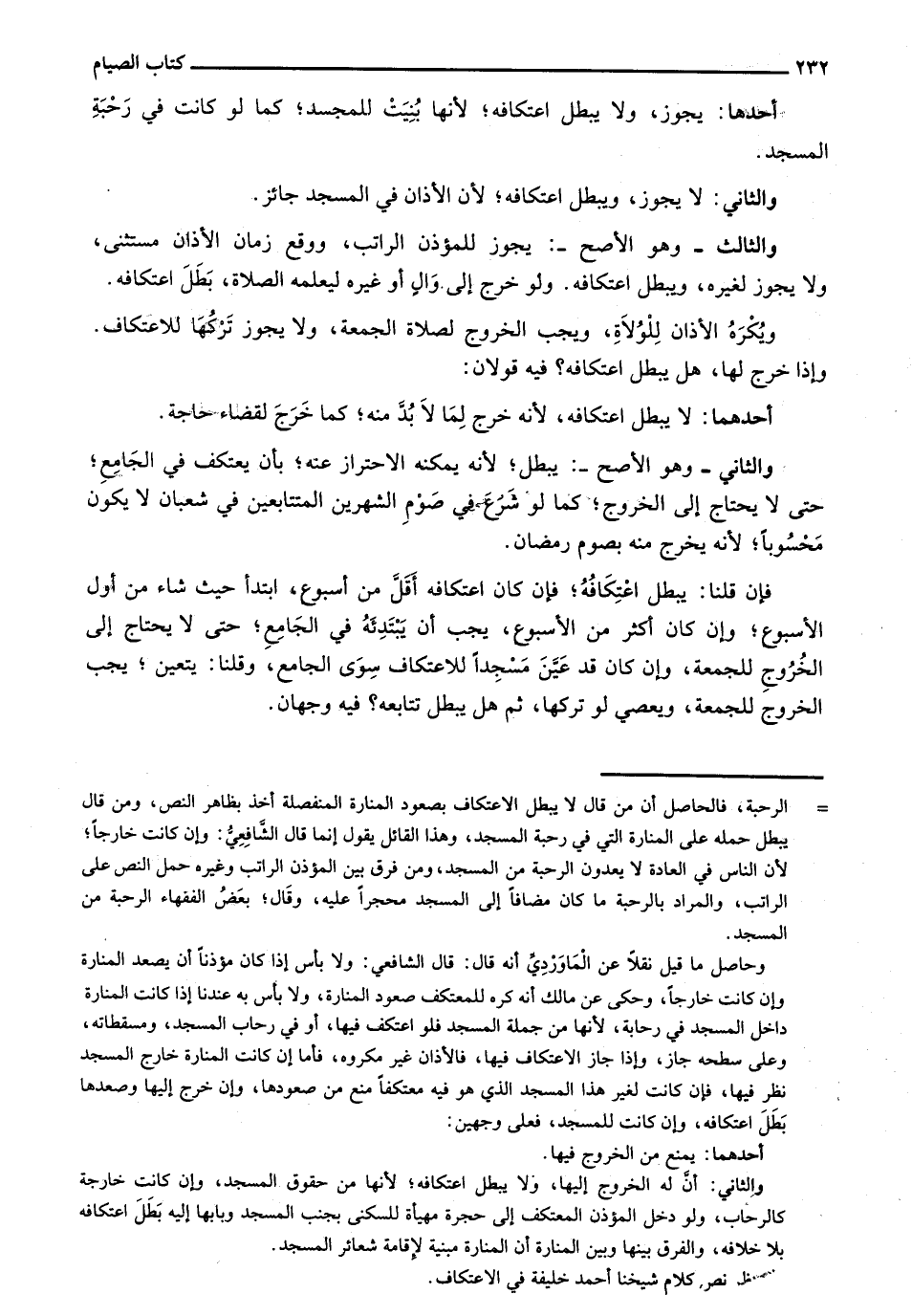 ويُكره الأذان للولاة، ويجب الخروج لصلاة الجمعة، ولا يجوز تركها للاعتكاف. وإذا خرج لهان هل يبطل اعتكافه فيه قولان: