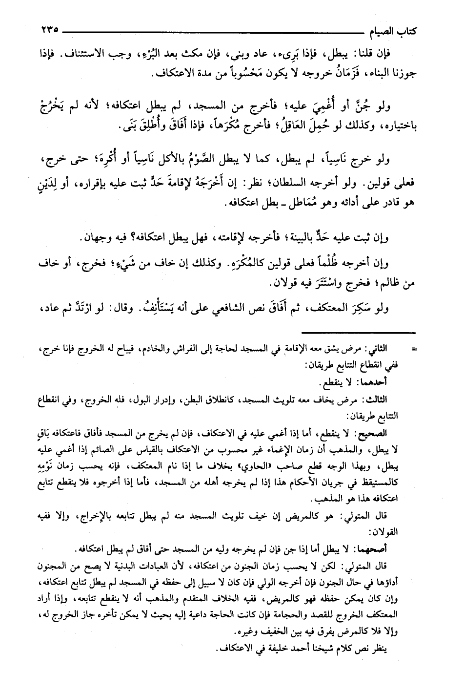 ولو خرج ناسياً، لم يبطل، كما لا يبطل الصوم بالأكل ناسياً أو أكره؛ حتى خرج، فعلى قولين. ولو أخرجه السلطان؛ نظر: إن أخرجه لإقامة حد ثبت عليه بإقراره، أو لدين هو قادر على أدائه وهو مماطل - بطل اعتكافه.