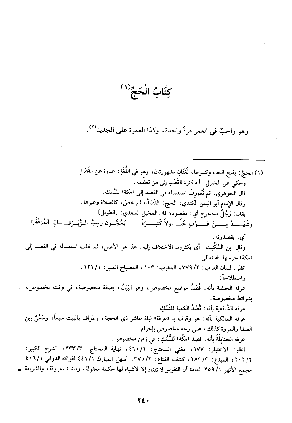 وهو واجب في العمر مرة واحدة، وكذا العمرة على الجديد.