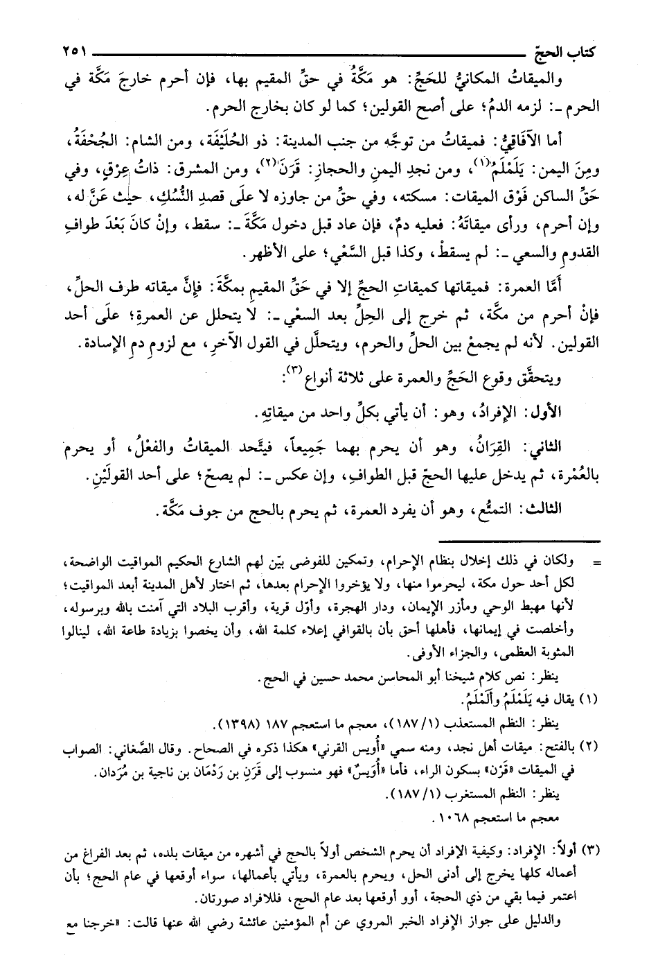 أما الآفاقي: فميقات من توجه من جنب المدينة: ذو الحليفة، ومن الشام: الجحفة، ومن اليمن: يلملم، ومن نجد اليمن والحجاز: قرن، ومن المشرق: ذات عرق، وفي حق الساكن فوق الميقات: مسكته، وفي حق من جاوزه لا على قصد النسك، حيث عن له، ون أحرم، ورأى ميقاته: فعليه دم، فإن عاد قبل دخول مكة -: سقط، وإن كان بعد طواف القدوم والسعي -: لم يسقط، وكذا قبل السعي؛ على الأظهر.