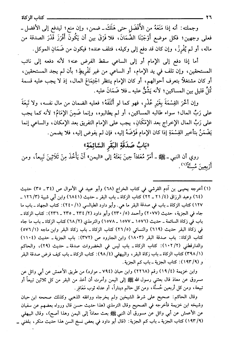روي أن النبي - صلى الله عليه وسلم- أمر معاذاً حين بعثه إلى "اليمن" أن يأخذ من ثلاثين تيعاً، ومن أربعين مسنة.