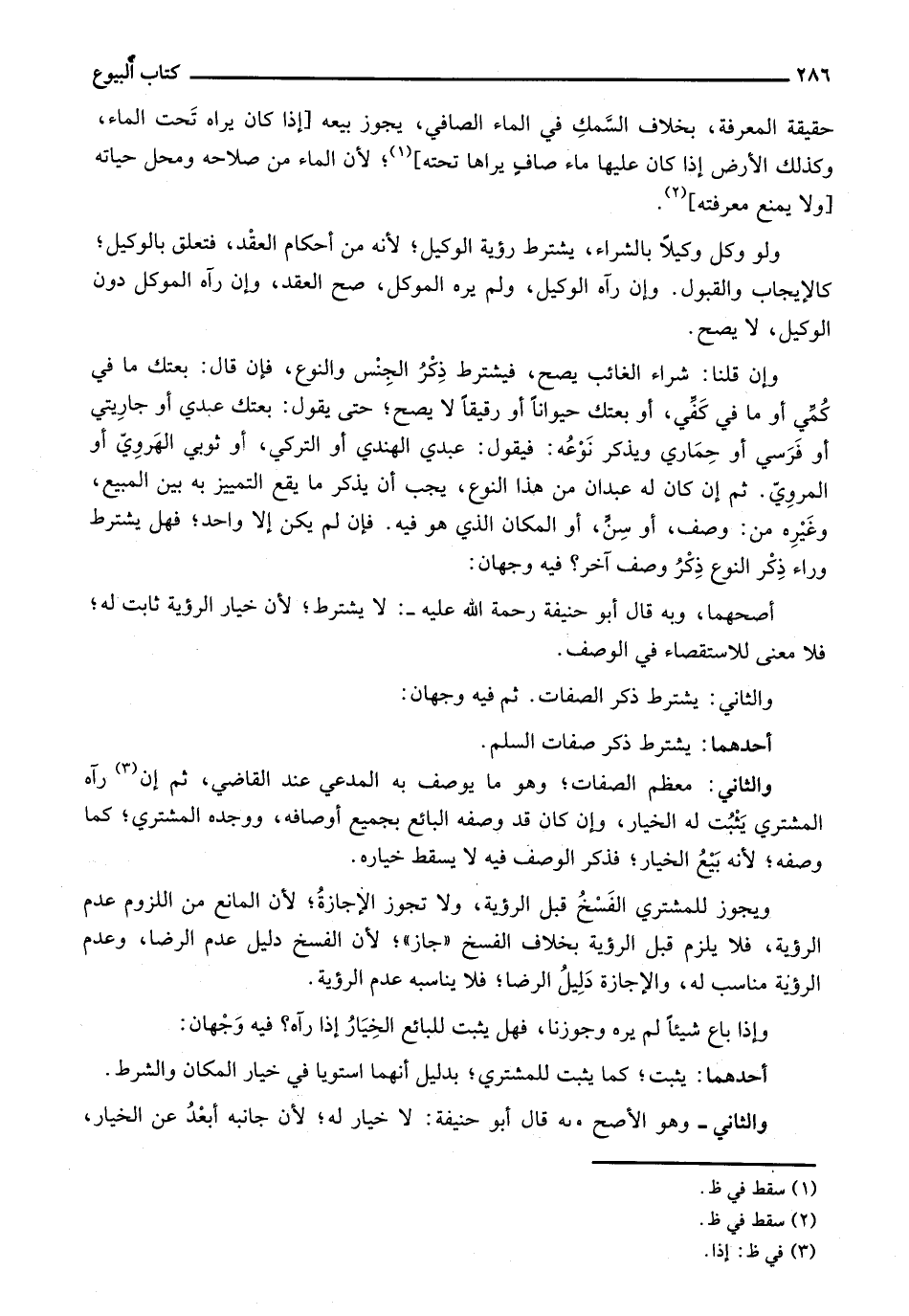 ولو وكل وكيلاً بالشراء، يشترط رؤية الوكيل؛ لأنه من أحكام العقْد، فتعلق بالوكيل؛ كالإيجاب والقبول. وإن رآه الوكيل، ولم يره الموكل، صح العقد، وإن رآه الموكل دون الوكيل، لا يصح.