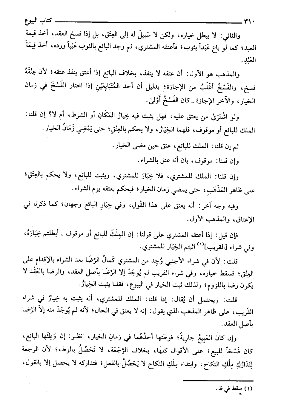 قلت: لأن في شراء الأجنبي وُجد من المشتري كمال الرضا بعد الشراء بالإقدام على العتق؛ فسقط خياره، وفي شراء القريب لم يوجد إلا الرضا بأصل العقد، والرضا بالعقد لا يكون رضا باللزوم؛ ولذلك ثبت الخيار في البيوع، فقلنا يثبت الخيار.