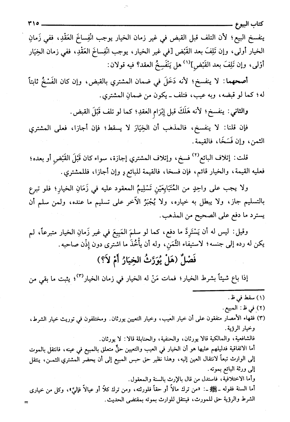 إذا باع شيئاً بشرط الخيار؛ فمات من له الخيار في زمان الخيار؛ يثبت ما بقي من