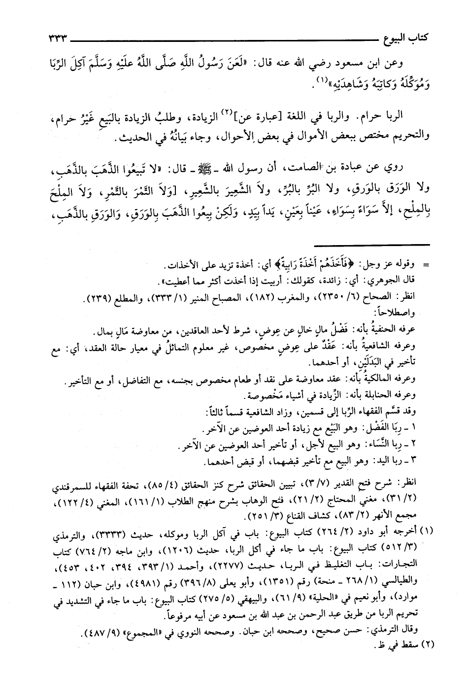 وعن ابن مسعود رضي الله عنه قال: "لعن رسول الله صلى الله عليه وسلم آكل الربا وموكله وكاتبه وشاهديه".