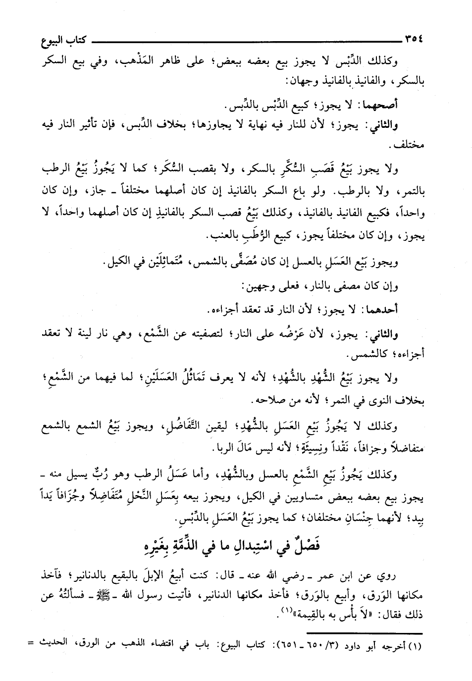 روي عن ابن عمر - رضي الله عنه - قال: كنت أبيع الإبل بالبقيع بالدنانير؛ فآخذ مكانها الورق، وأبيع بالورق؛ فأخذ مكانها الدنانير، فأتيت رسول الله - صلى الله عليه وسلم - فسألته عن ذلك فقال: "لا بأس به بالقيمة".