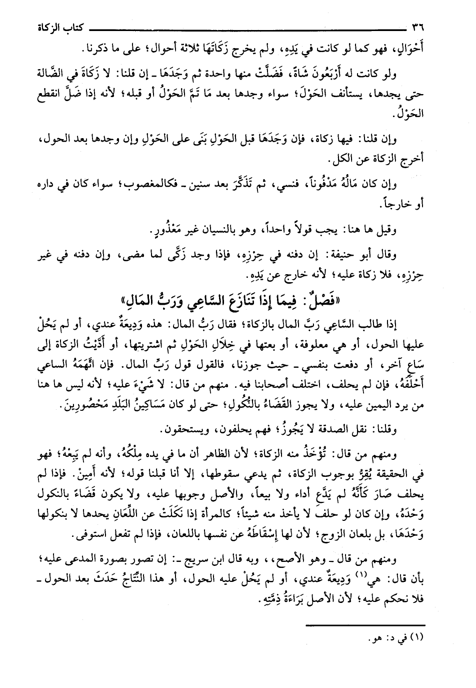 "فصلٌ: فيما إذا تنازع الساعي ورب المال"
