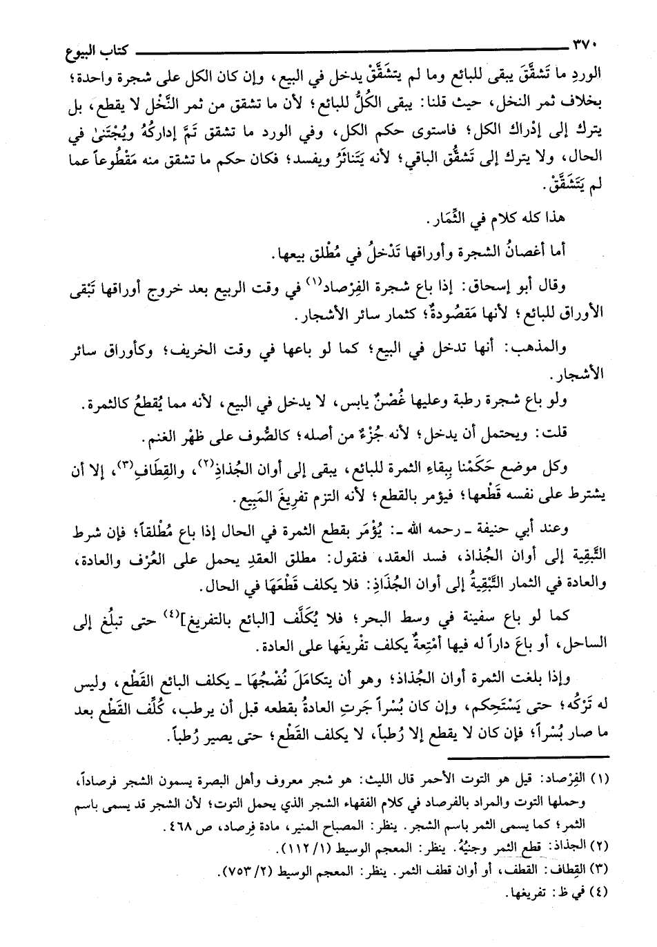 وقال أبو إسحاق: إذا باع شجرة الفرصاد في وقت الربيع بعد خروج أوراقها تبقى الأوراق للبائع؛ لأنها مقصودة؛ كثمار سائر الأشجار.
