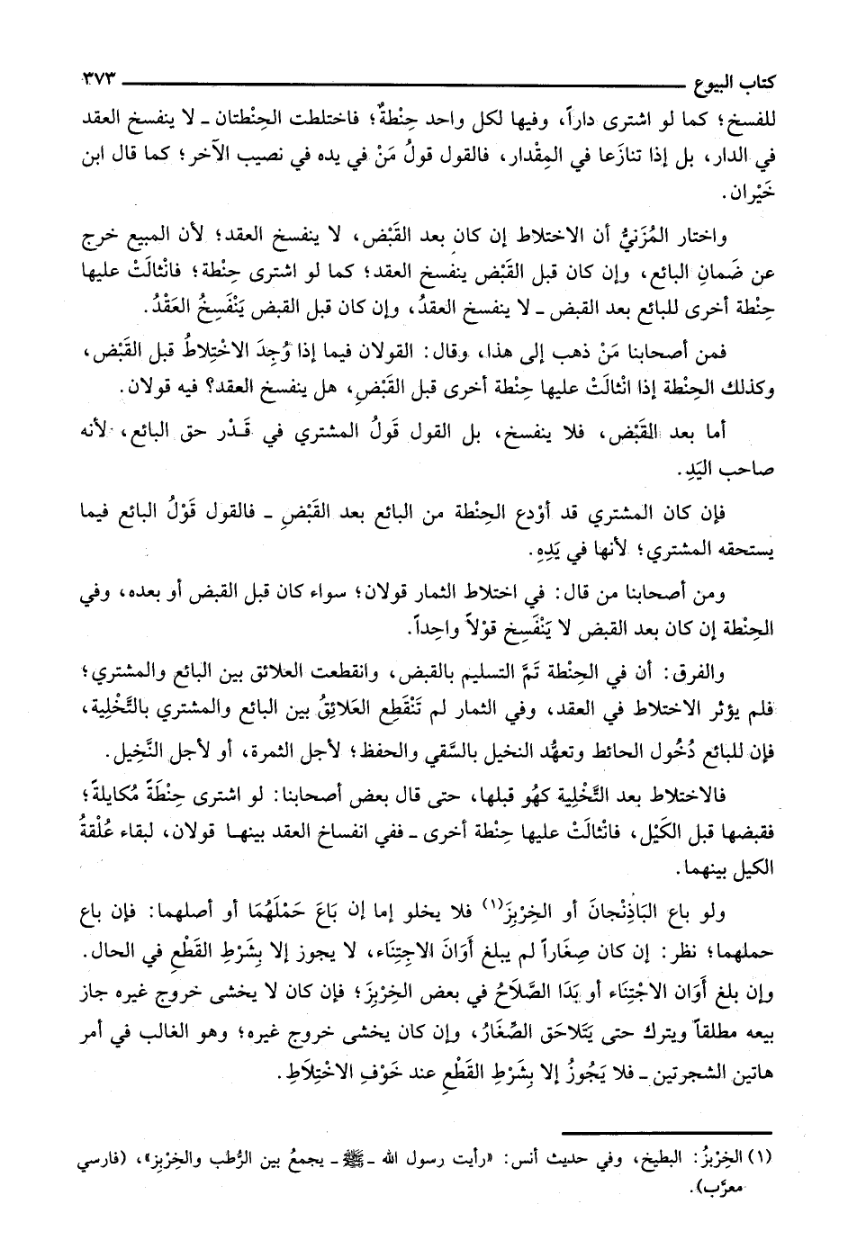 للفسخ؛ كما لو اشترى داراً، وفيها لكل واحد حنطة؛ فاختلطت الحنطتان- لا ينفسخ العقد في الدار، بل إذا تنازعا في المقدار، فالقول قول من في يده في نصيب الآخر؛ كما قال ابن خيران.