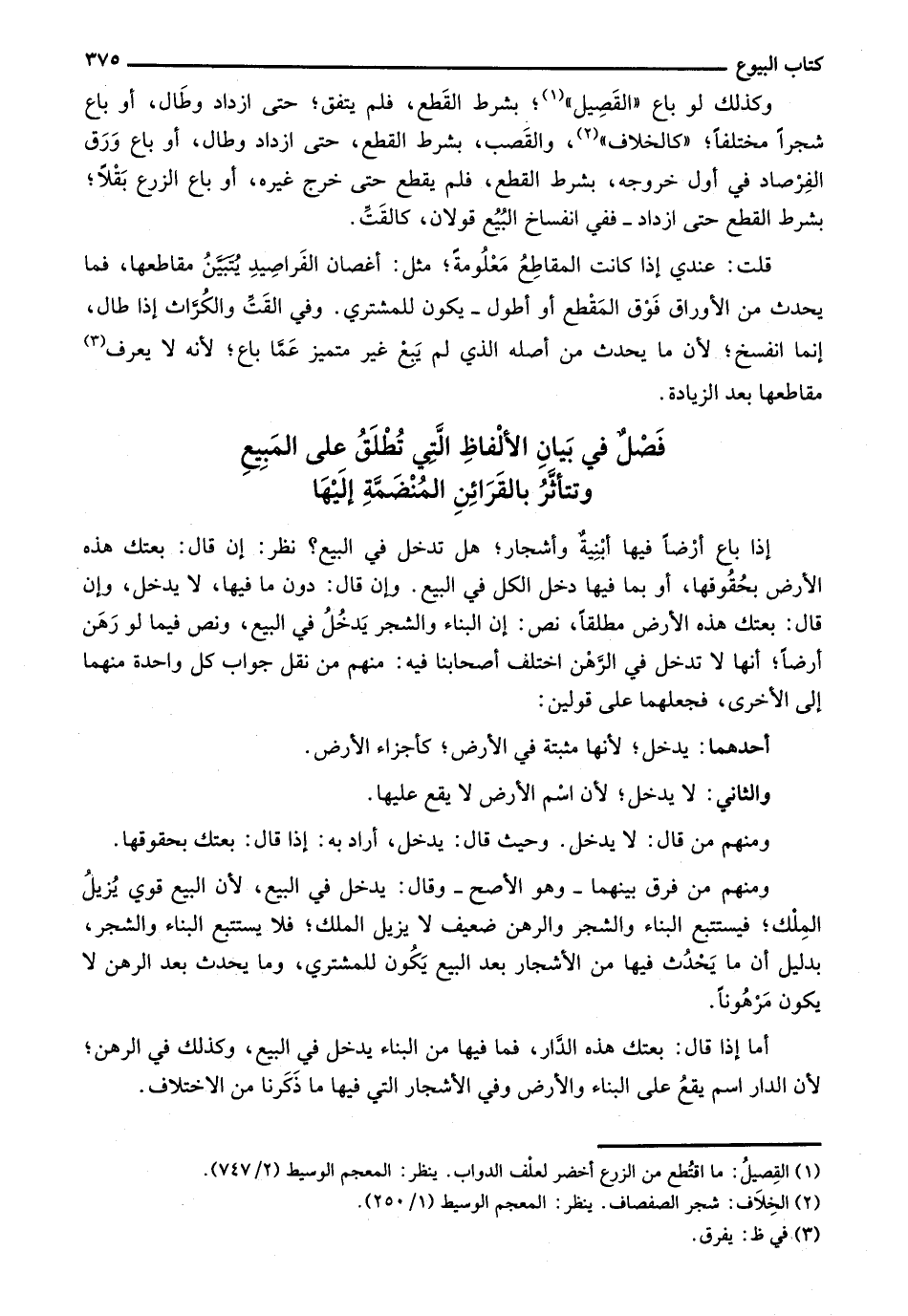 فصل في بيان الألفاظ التي تطلق على المبيع