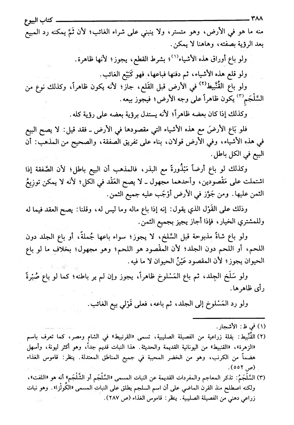 ولو باع القنبيط في الأرض قبلا لقلع، جاز؛ لأنه يون ظاهراً، وكذلك نوع من السلجم يكون ظاهراً على وجه الأرض؛ فيجوز بيعه.