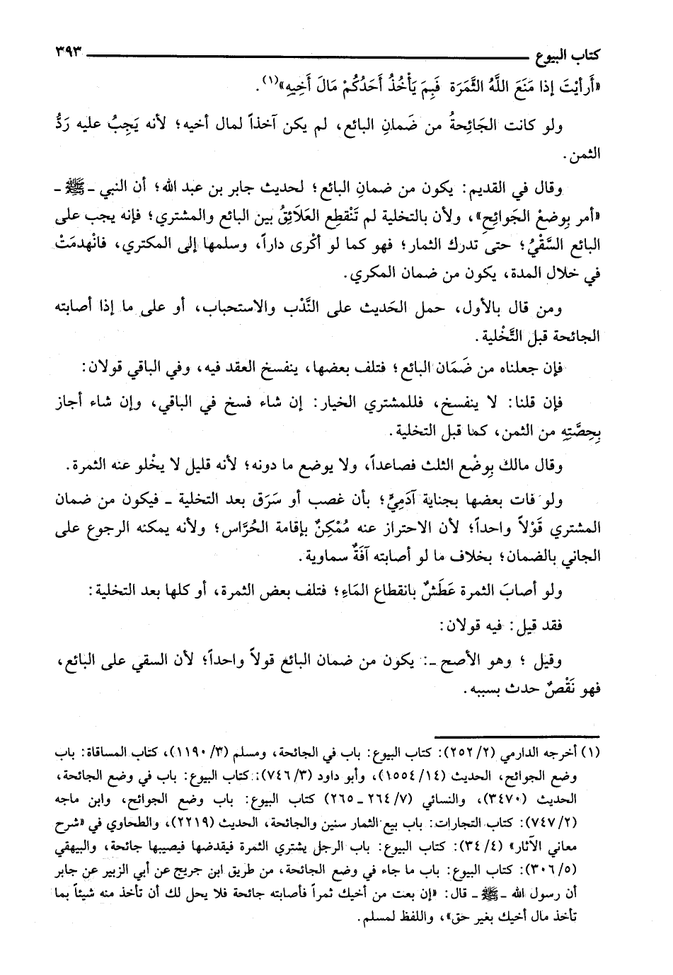 ومن قال بالأول، حمل الحديث على الندب والاستحباب، أو على ما إذا أصابته الجائحة قبل التخلية.