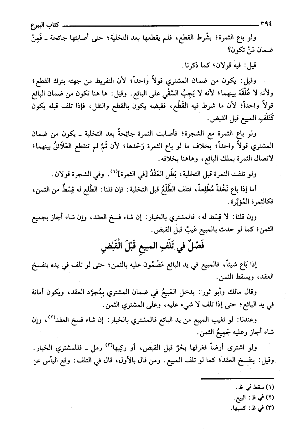 فصل في تلف المبيع قبل القبض