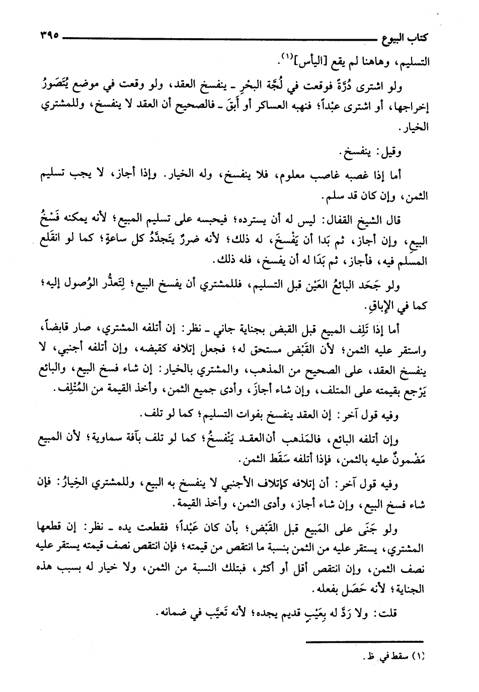 ولو اشترى درة فوقعت في لجة البحر - ينفسخ العقد، ولو وقعت في موضع يتصور إخراجها، أو اشترى عبداً؛ فنهبه العساكر أو أبق - فالصحيح أن العقد لا ينفسخ، وللمشتري الخيار.
