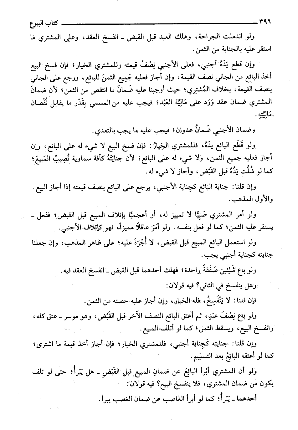 وإن قطع يده أجنبي، فعلى الأجنبي نصف قيمته وللمشتري الخيار؛ فن فسخ البيع أخذ البائع من الجاني نصف القيمة، وإن أجاز فعليه جميع الثمن للبائع، ورجع على الجاني بنصف القمية، بخلاف المشتري؛ حيث أوجبنا عليه ضمان ما انتقص من الثمن؛ لأن ضمان المشتري ضمان عقد ورد على مالية العبد؛ فيجب عليه من المسمى بقدر ما يقابل نقصان ماليته.