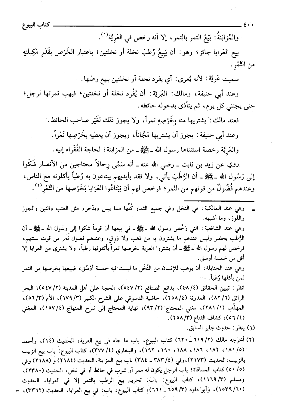 بيع العرايا جائز؛ وهو: أن يبيع رطب نخلة أو نخلتين؛ باعتبار الخرص بقدر مكيلته من التمر.