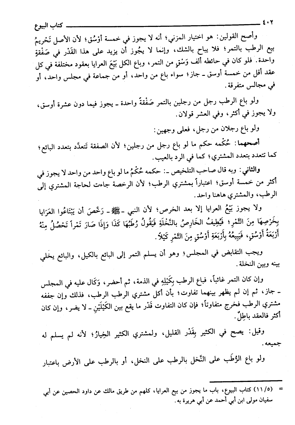 وأصح القولين: هو اختيار المزني؛ أنه لا يجوز في خمسة أوسق؛ لأن الأصل تحريم بيع الرطب بالتمر؛ فلا يباح بالشك، وإنما لا يجوز أن يزيد على هذا القدر في صفقة واحدة. فلو كان في حائطه ألف وسق من التمر، وباع الكل بيع العرايا بعقود مختلفة في كل عقد أقل من خمسة أوسق - جاز؛ سواء باع من واحد، أو من جماعة في مجلس واحد، أو في مجالس متفرقة.