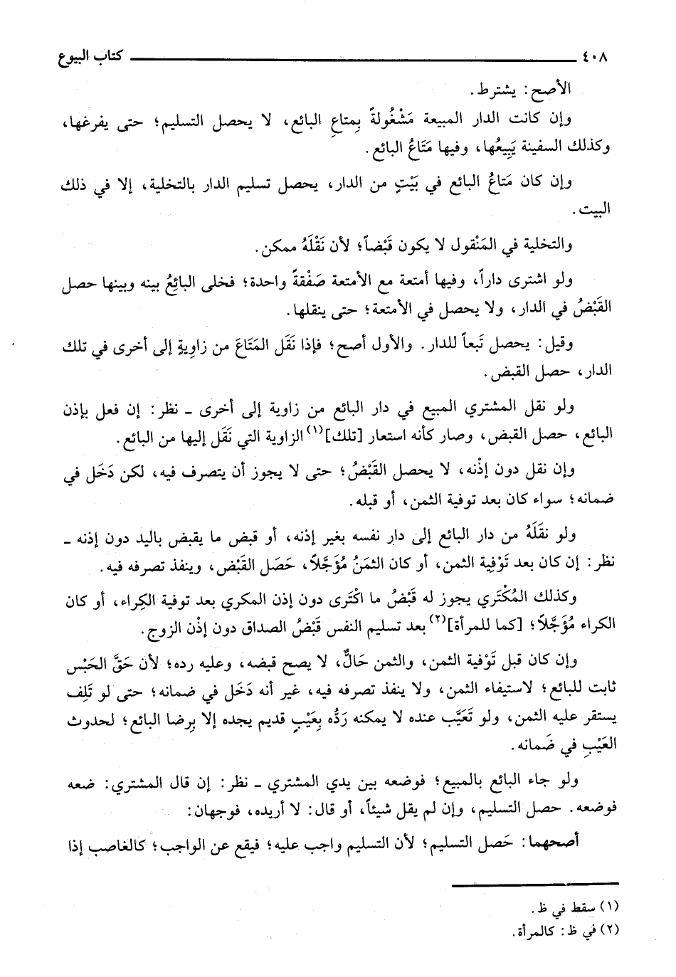 وإن كانت الدار المبيعة مشغولة بمتاع البائع، لا يحصل التسليم؛ حتى يفرغها، وكذلك السفينة يبيعها، وفيها متاع البائع.