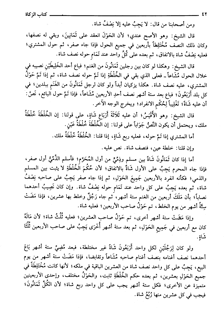 قال الشيخ: وهو الأقيس؛ أن عليه ثلاثة أرباع شاة، على قولنا: إن الخلطة خلطة ملك، ويحتمل أن يكون النص جواباً على قولنا: إن الخلطة خلطة عين.