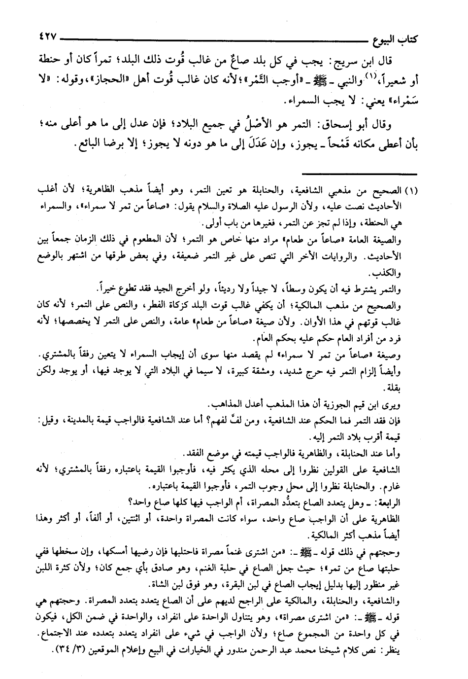 قال ابن سريج: يجب في كل بلد صاع من غالب قوت ذلك البلد؛ تمراً كان أو حنطة أو شعيراً، والنبي - صلى الله عليه وسلم- "أوجب التمر"؛ لأنه كان غالب قوت أهل "الحجاز"، وقوله: "لا سمراء" يعني: لا يجب السمراء.