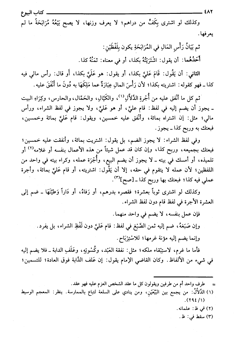 ثم بيان رأس المال في المرابحة يكون بلفظين: