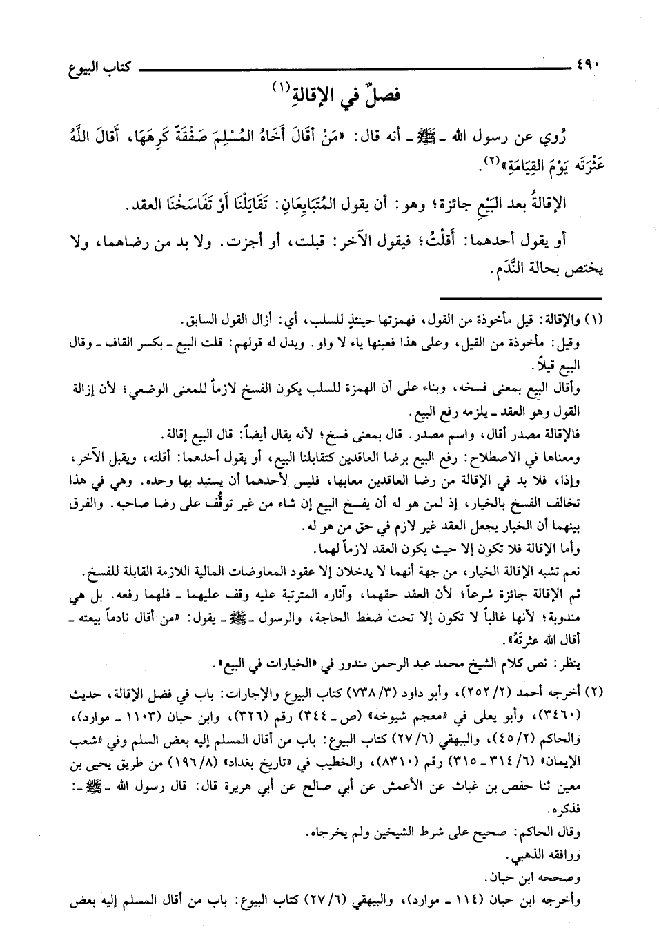 فصل في الإقالة