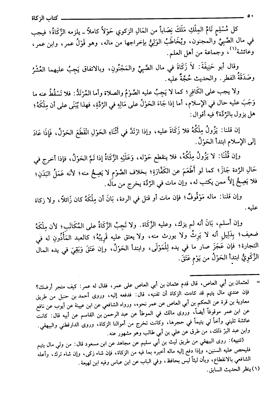وقال أبو حنيفة: الزكاة في مال الصبي والمجنون، وبالاتفاق يجب عليهما العشر وصدقة الفطر. والحديث حجة عليه.