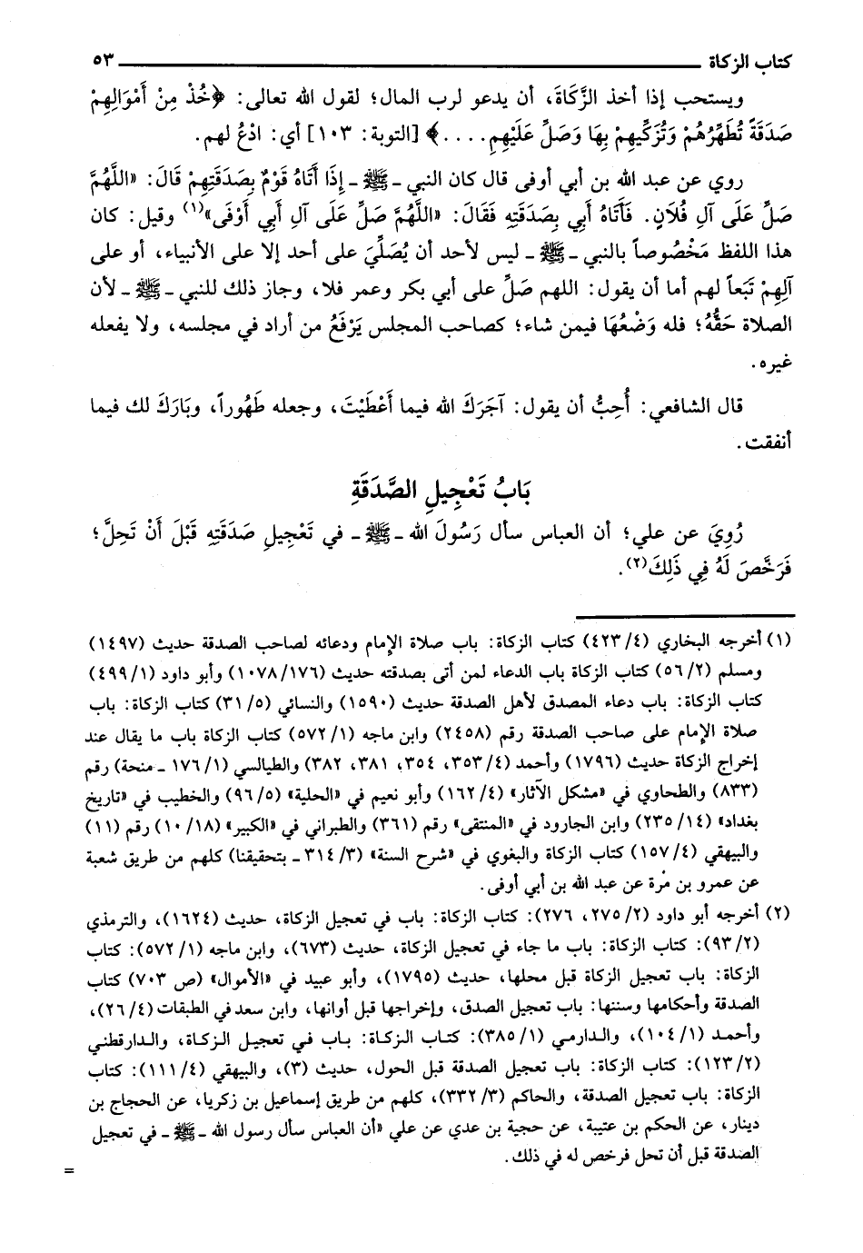 روي عن علي؛ أن العباس سأل رسول الله - صلى الله عليه وسلم - في تعجيل صدقته قبل أن تحل؛ فرخص له في ذلك.