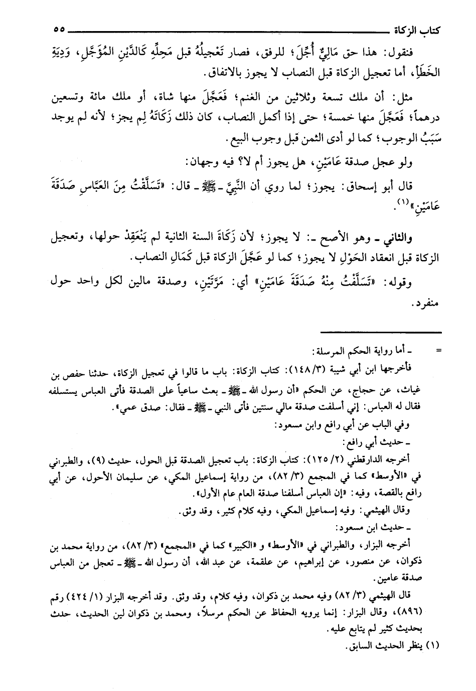قال أبو إسحاق: يجوز؛ لما روي أن النبي - صلى الله عليه وسلم - قال: "تسلقت من العباس صدقة عامين".