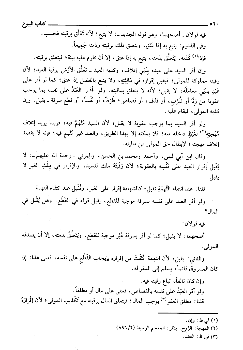 وقال ابن أبي ليلى، وأحمد ومحمد بن الحسن، والمزني - رحمة الله عليهم-: لا يُقبل إقرار العبد على نفسه بالعقوبة؛ لأن رقبته ملك للسيد، والإقرار في ملك الغير لا يقبل.
