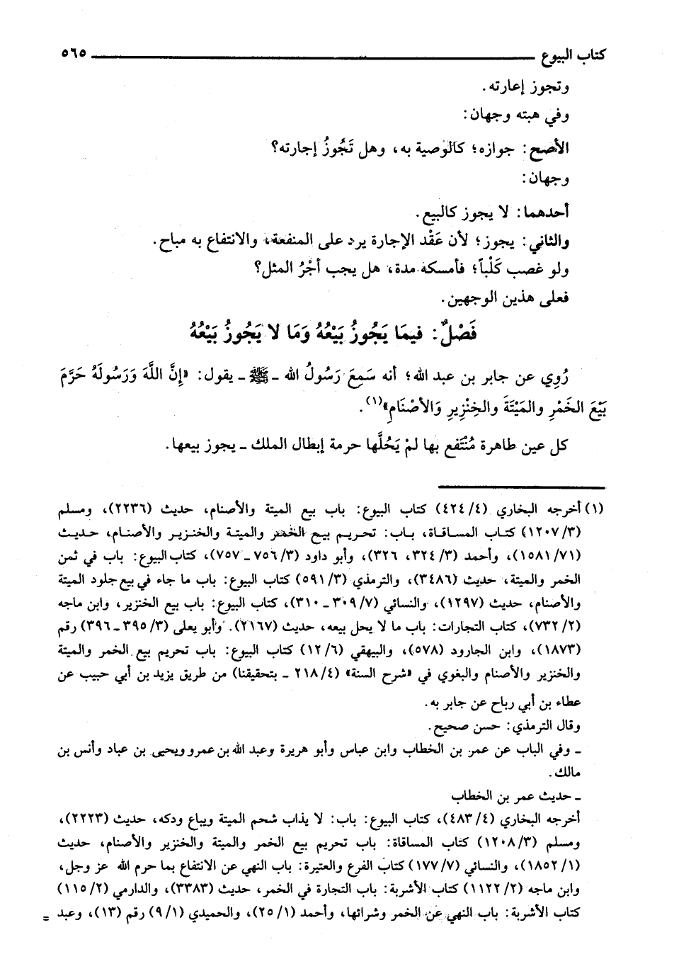 رُوي عن جابر بن عبد الله؛ أنه سمع رسول الله -صلى الله عليه وسلم- يقول: "إن الله ورسوله حرم بيع الخمر والميتة والخنزير والأصنام".