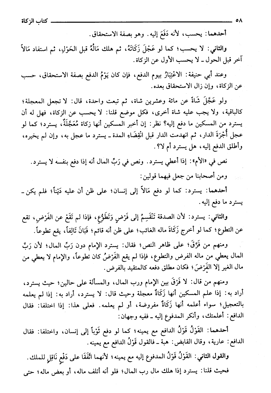 ومنهم من قال: لا فرق بين الإمام ورب المال، والمسألة على حالين؛ حيث يسترد، أراد به: إذا علم المسكين أنها زكاة معجلة وحيث قال: لا يسترد، أراد به: إذا لم يعلمه بالتعجيل؛ سواء أعلمه أنها زكاة مفروضة، أو لم يعلمه. فعلى هذا: إذا اختلفا: فقال الدافع: أعلمتك، وأنكر المدفوع إليه - ففيه وجهان:
