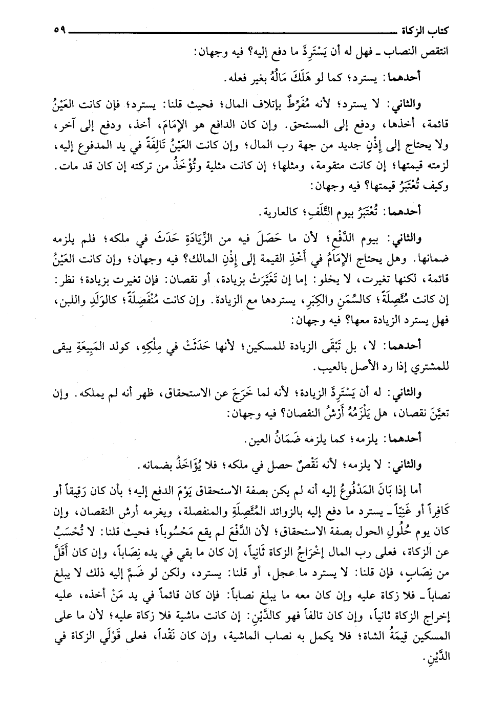 أما إذا بان المدفوع إليه أنه لم يكن بصفة الاستحقاق يوم الدفع إليه؛ بأن كان رقيقاً أو كافراً أو غنياً - يسترد مادفع ليه بالزوائد المتصلة والمنفصلة، ويغرمه أرش النقصان، وإن كان يوم حلول الحول بصفة الاستحقاق؛ لأن الدفع لم يقع محسوباً؛ فحيث قلنا: لاتحسب عن الزكاة، فعلى رب المال إخراج الزكاة ثانياً، إن كان ما بقي في يده نصاباً، وإن كان أقل من نصاب، فإن قلنا: لا يسترد ما عجل، أو قلنا: يسترد، ولكن لو ضم إليه ذلك لا يبلغ نصاباً - فلا زكاة عليه وإن كان معه ما يبلغ نصاباً: فإن كان قائماً في يد من أخذه، عليه إخراج الزكاة ثانياً، وإن كان تالفاً فهو كالدين: إن كانت ماشية فلا زكاة عليه؛ لأن ما على المسكين قيمة الشاة؛ فلا يكمل به نصاب الماشية، وإن كان نقداً، فعلى قولي الزكاة في الدين.