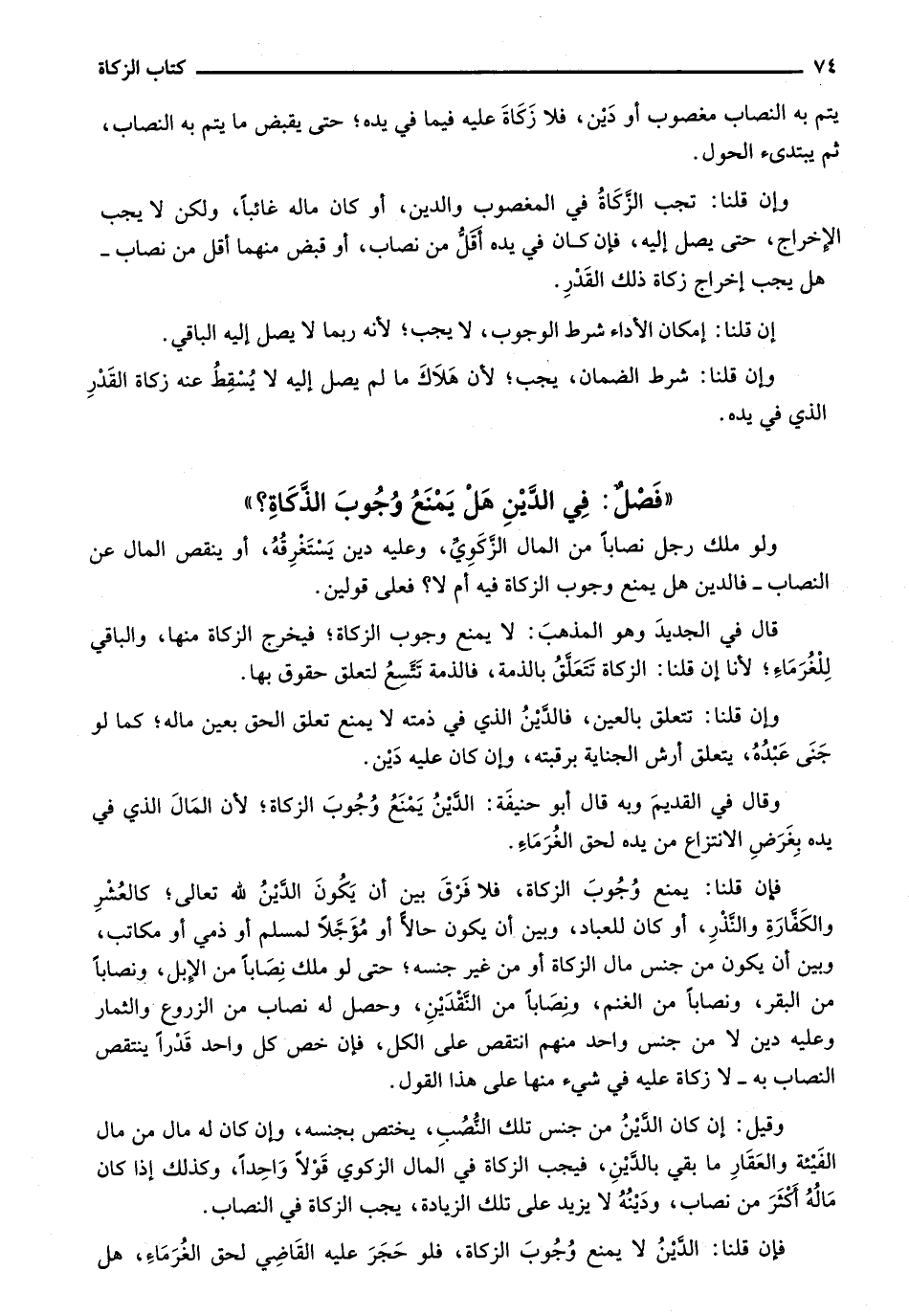 "فصلٌ: في الدين هل يمنع وجوب الزكاة؟ "