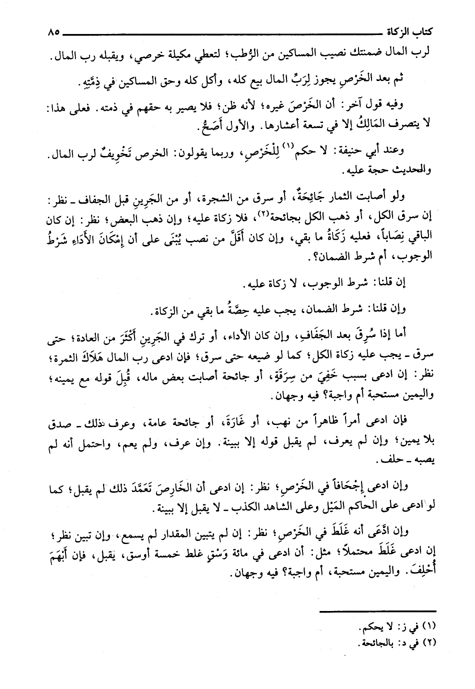 وعند أبي حنيفة: لا حكم للخرص، وربما يقولون: الخرص تخويف لرب المال. الحديث حجة عليه.