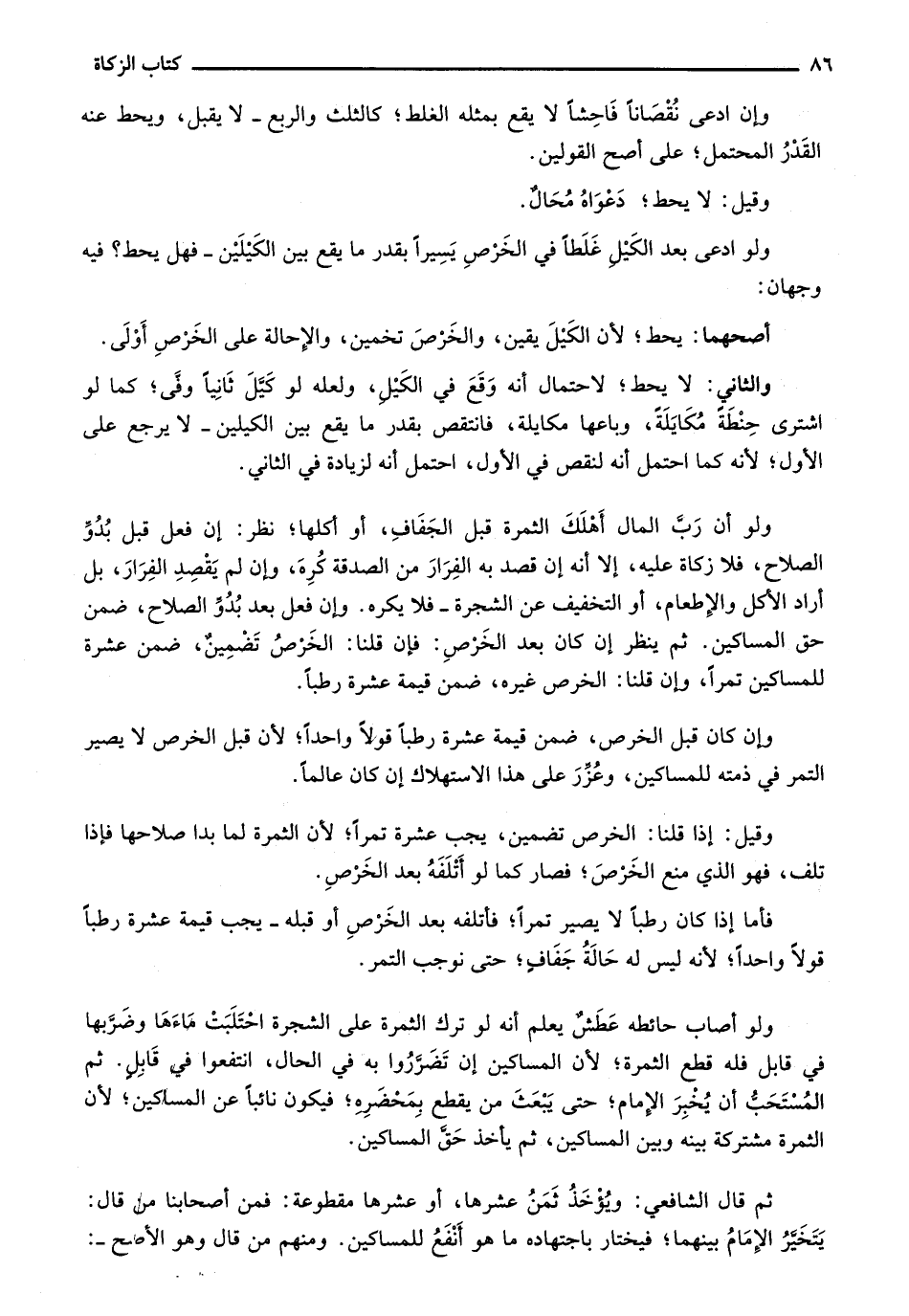 ثم قال الشافعي: ويؤخذ ثمن عشرها، أو عشرها مقطوعة: فمن أصحابنا من قال: يتخير الإمام بينهما؛ فيختار باجتهاده ما هو أنفع للمساكين. ومنهم من قال وهو الأصح-: