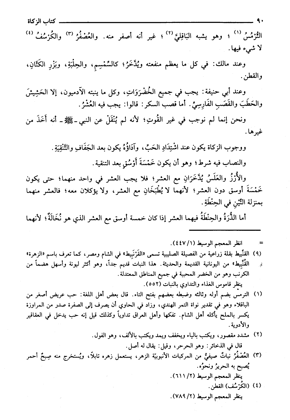 وعند مالك: في كل ما يعم منفعته ويدخر؛ كالسمسم، والحلبة، وبزر الكتان، والقطن.