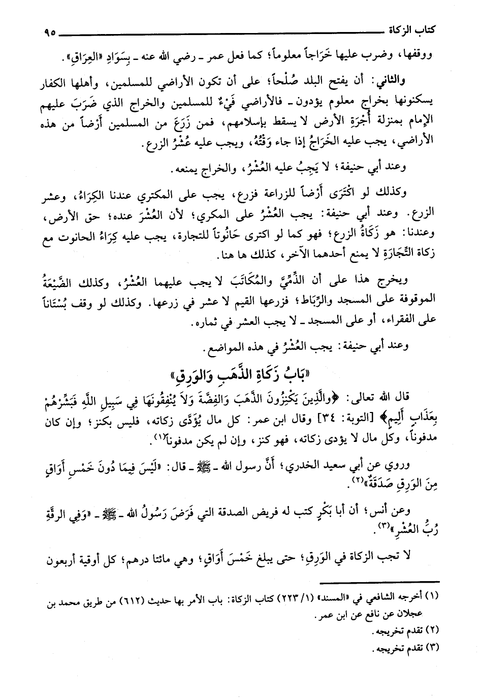 قال الله تعالى: {وَالَّذِينَ يَكْنِزُونَ الذَّهَبَ وَالْفِضَّةَ وَلا يُنفِقُونَهَا فِي سَبِيلِ اللَّهِ فَبَشِّرْهُمْ بِعَذَابٍ أَلِيمٍ} [التوبة: 34] وقال ابن عمر: كل مال يؤدي زكاته، فليس بكنز؛ وإن كان مدفوناً، وكل مال لا يؤدي زكاته، فهو كنز، وإن لم يكن مدفوناً.