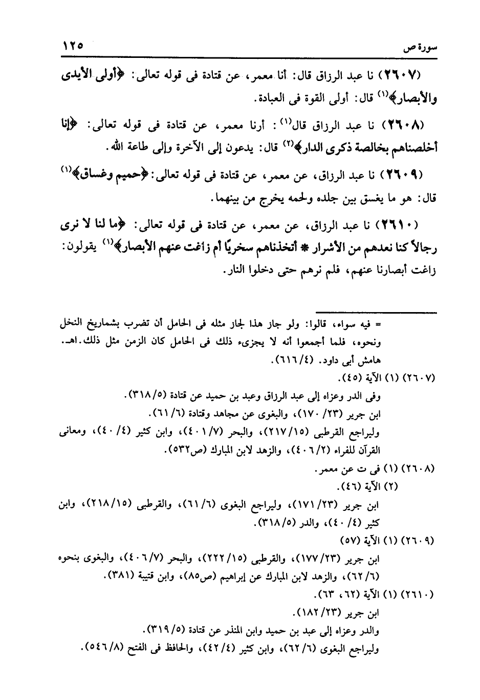 2607 - أنا مَعْمَرٌ , عَنْ قَتَادَةَ , فِي قَوْلِهِ تَعَالَى: {أُولِي الْأَيْدِي وَالْأَبْصَارِ} [ص: 45] قَالَ: «§أُولِي الْقُوَّةِ فِي الْعِبَادَةِ»