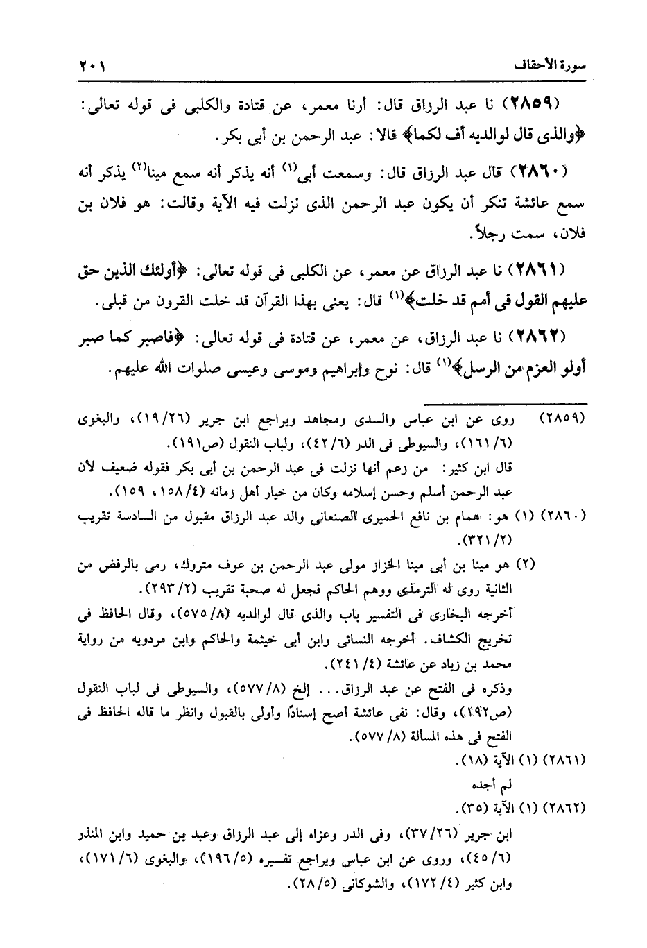 2861 - عَنْ مَعْمَرٍ , عَنِ الْكَلْبِيِّ , فِي قَوْلِهِ تَعَالَى: {§أُولَئِكَ الَّذِينَ حَقَّ عَلَيْهِمُ الْقَوْلُ فِي أُمَمٍ قَدْ خَلَتْ} [الأحقاف: 18] قَالَ: يَعْنِي بِهَذَا الْقُرْآنِ {وَقَدْ خَلَتِ الْقُرُونُ مِنْ قَبْلِي} [الأحقاف: 17]