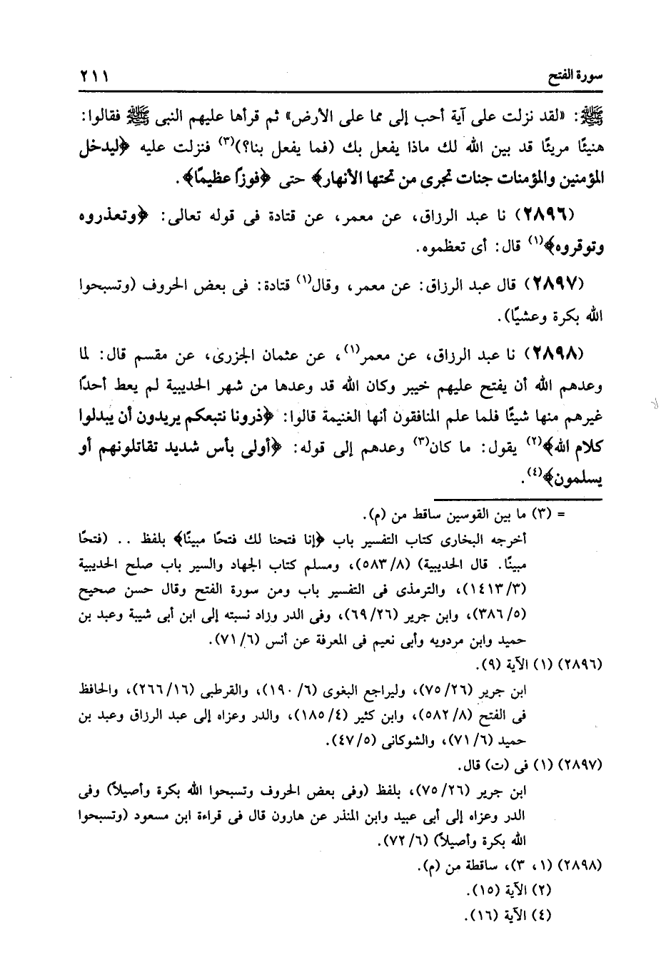 2896 - عَنْ مَعْمَرٍ , عَنْ قَتَادَةَ , فِي قَوْلِهِ تَعَالَى: {§وَتُعَزِّرُوهُ وَتُوقِّرَوهُ} [الفتح: 9] قَالَ: «أَيُّ تُعَظِّمُوهُ»